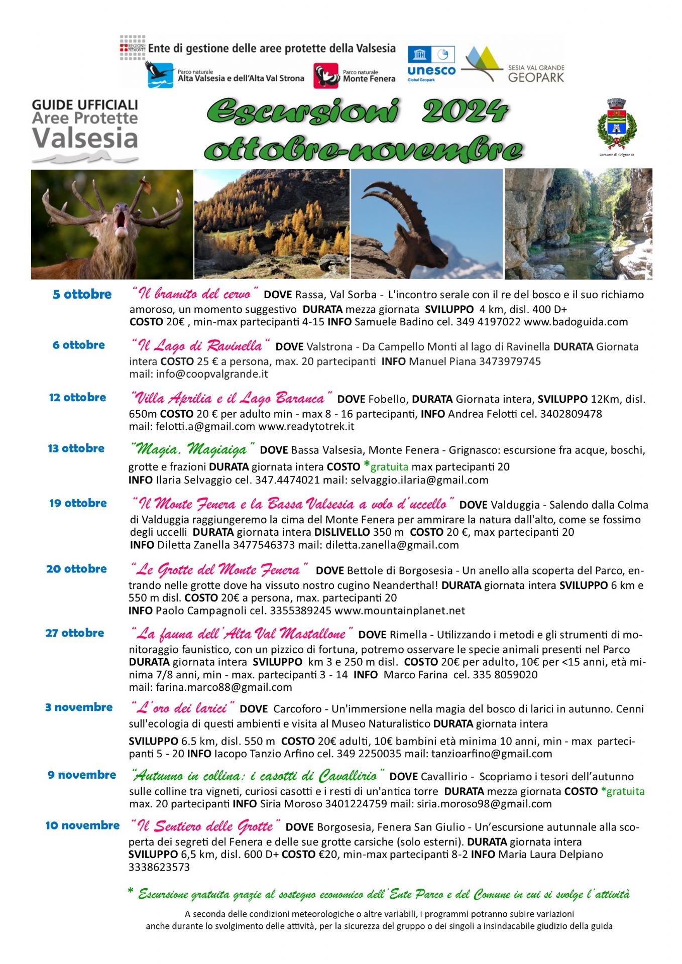 Anche per la stagione autunnale proponiamo 10 itinerari, di cui 2 rientrano nelle escursioni completamente gratuite per i fruitori.