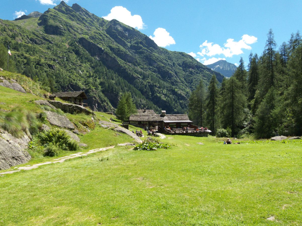 During the first stretch of this leg you can admire the south wall of Monte Rosa and its main 4000 peaks (P.ta Giordani, Vincentpiramid, P.ta Parrot and P.ta Gnifetti with the Regina Margherita Hut/observatory). Reach the Refuge Barba Ferrero at Alpe Vigne Superiore (2247m). Continue along the hillside up to Alpe Testanera (2260m), then hike down to Alpe Mitlentheil (1943m). From here, reach Alpe Faller (1970m) and continue up to Colle del Piglimò (2485m), after having left behind you (on your left) the famous mule track leading to Colle del Turlo. The Rima territory starts here: hike down to Lanciole Sup. with its typical terraced houses, then keep on hiking (again along the hillside) up to Alpe Lavazei and Alpe Brusiccia (1943m). The types of stone constructions of all these mountain pastures are particularly noteworthy. Finally, hike up to Alpe Vallé Sup., where the Park Refuge (2175m) of the same name is located.