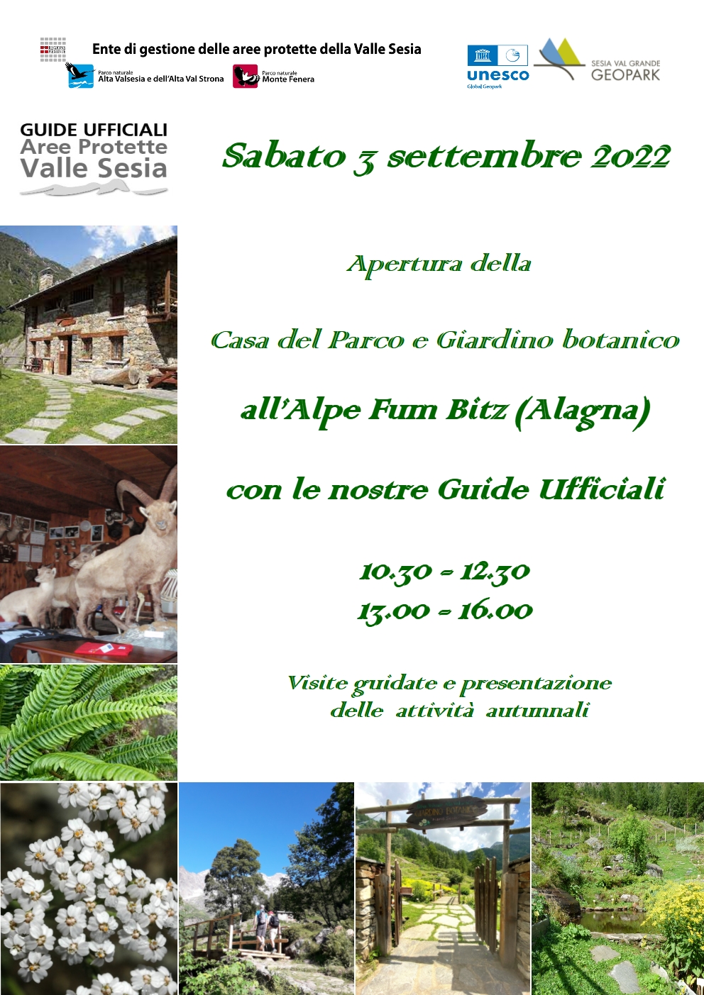 Una giornata con le nostre Guide ufficiali al Centro visite all'Alpe Fum Bitz, per visitare la Casa del Parco e il Giardino botanico. Verrà presentato anche il calendario delle escursioni nei nostri parchi per i mesi di settembre e ottobre.