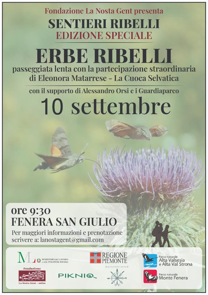 Con la nuova edizione di "Sentieri Ribelli", iniziativa della Fondazione La Nosta Gent, vi proponiamo una giornata all'insegna della natura! Consisterà in una passeggiata all'interno del Parco Naturale Monte Fenera accompagnati dai Guardaparco, dal professor Alessandro Orsi e da Eleonora Matarrese "La Cuoca Selvatica", che insegnerà a riconoscere le erbe selvatiche che crescono spontaneamente sui sentieri. Un'occasione per conoscere sempre più a fondo il nostro territorio!