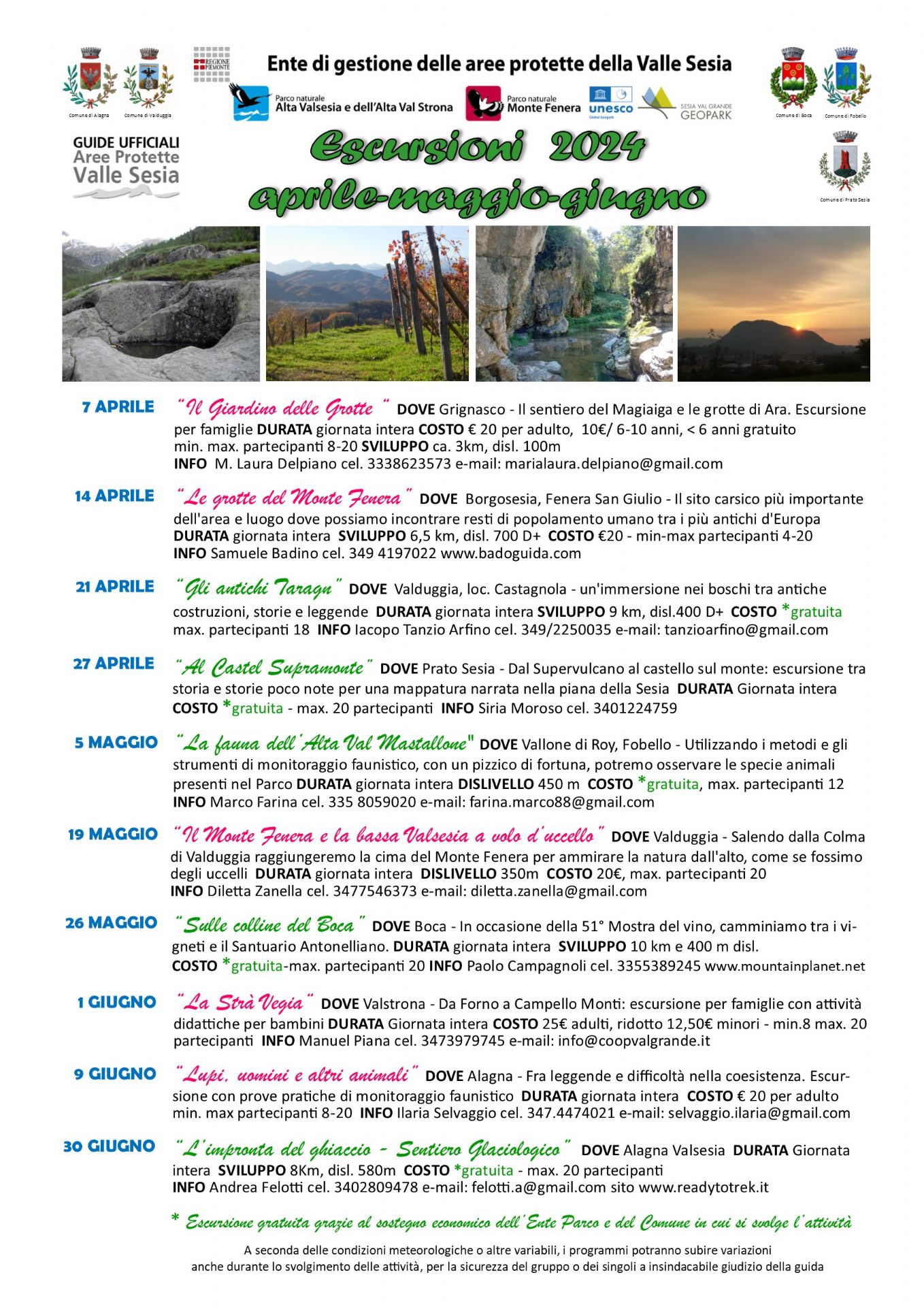 Anche quest’anno l’Ente di Gestione delle Aree protette della Valle Sesia propone numerose escursioni con le Guide ufficiali; 30 in tutto, ripartite in 3 calendari stagionali.