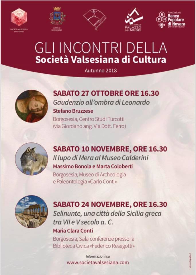 • Sabato 10 novembre, ore 16,30 c/o il Museo di Archeologia e Paleontologia Carlo Conti di Borgosesia: Il lupo di Mera al Museo Calderini, a cura di Marta Coloberti e Massimo Bonola