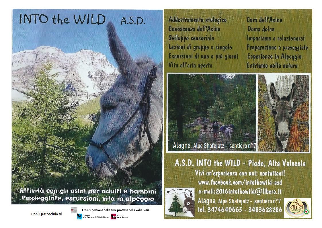 Passeggiata con gli asini preceduta da attività propedeutica in campo nei comuni di Piode (“La via dei caprioli”, Santuario di Pietre Grosse), Pila e Campertogno.