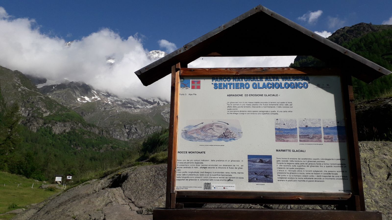 Grazie alla scansione del QR code posto sui tabelloni del percorso didattico, il Sentiero Glaciologico del Parco Naturale Alta Valsesia (Comune di Alagna) è disponibile anche in versione inglese. Il link al sito ufficiale dell'Ente di Gestione delle Aree Protette della Valle Sesia permette di consultare e scaricare testi e brochure.