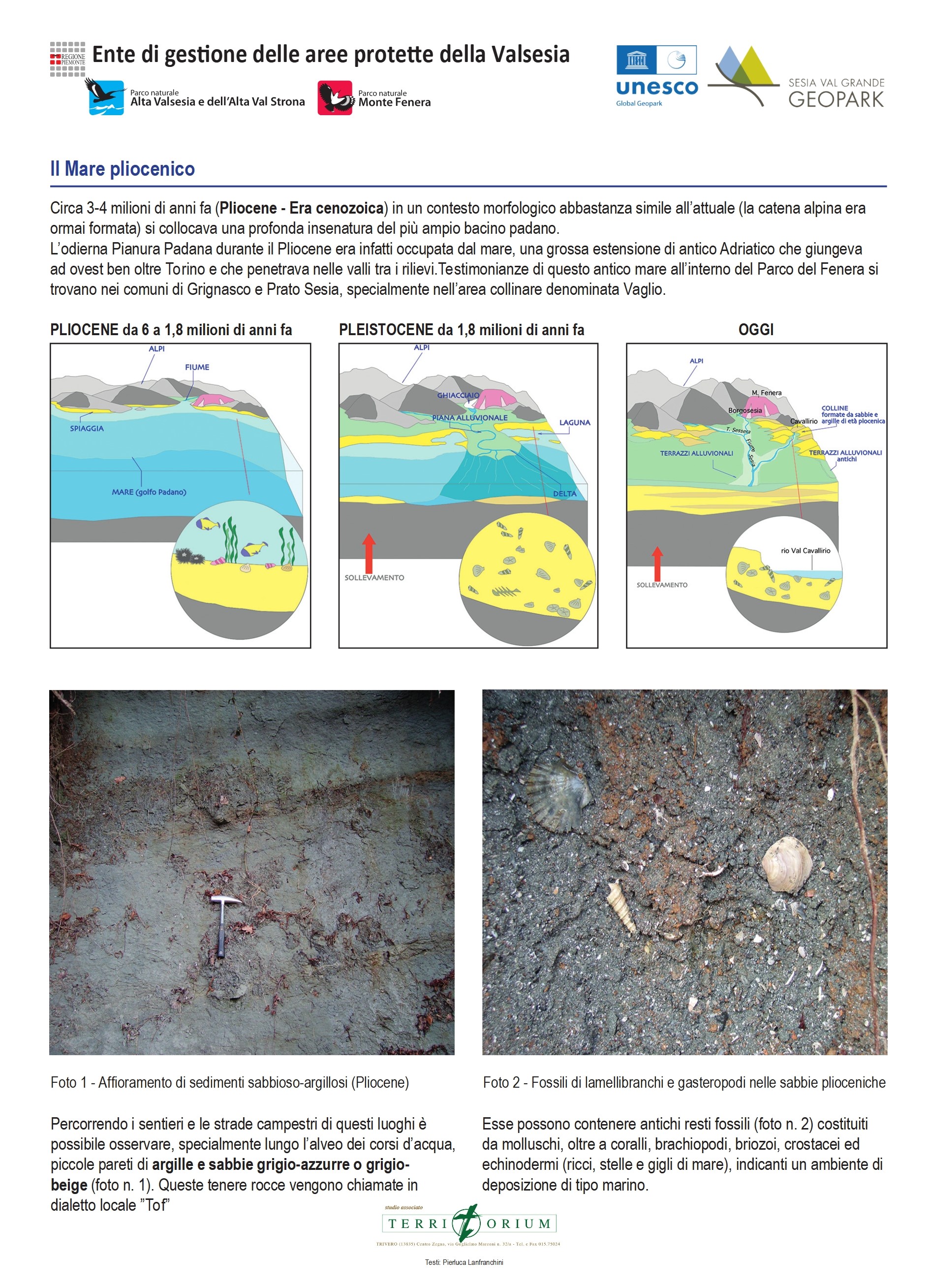 Verso la fine dell’Era Cenozoica, durante il Pliocene, il mare invadeva ancora la Pianura Padana e si insinuava nelle Valli Alpine: infatti, nei depositi marnosi, formatisi circa 5 milioni di anni fa, si possono rinvenire molte forme di molluschi e di flora subtropicali.
