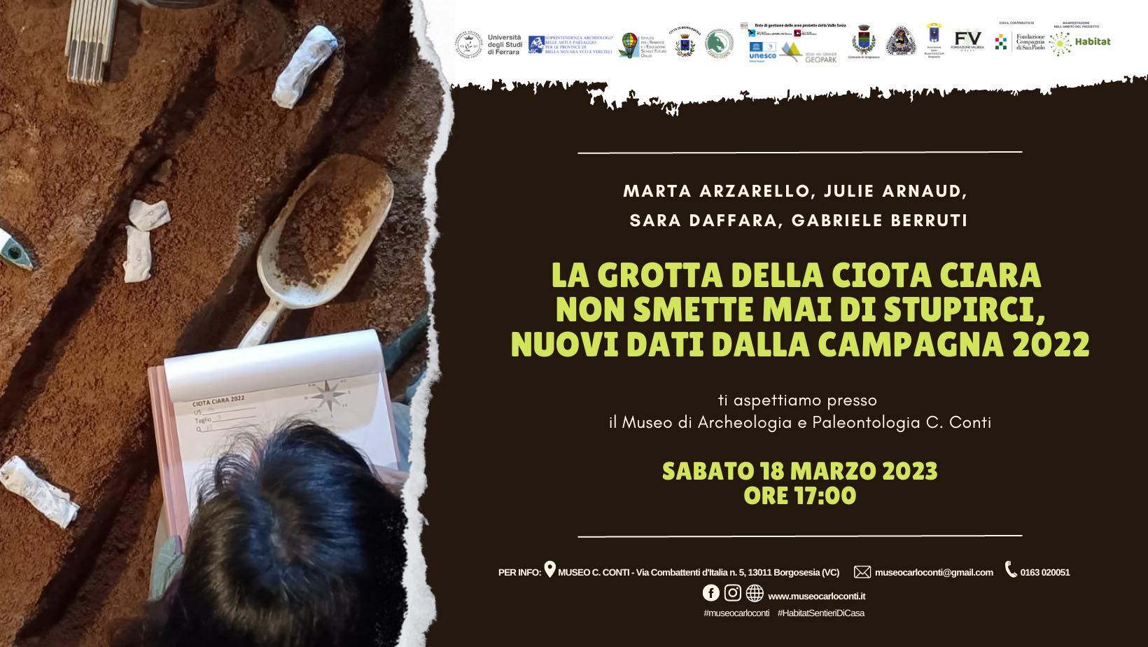 Il primo appuntamento è sabato 18 marzo, alle ore 17, al Museo Carlo Conti di Borgosesia, con l’incontro “La Grotta della Ciota Ciara non smette mai di stupirci”, dedicato agli adulti.