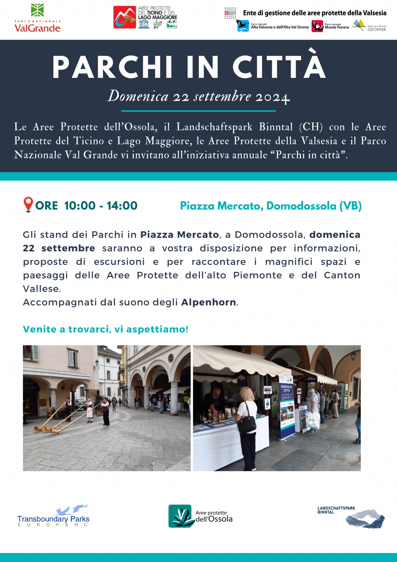 Domenica 22 settembre si terrà a Domodossola la manifestazione Parchi in città 2024 promossa dalle Aree protette dell’Ossola in collaborazione con la Riserva di Binn (Vallese) con cui formano un parco transfrontaliero, a cui partecipiamo dal 2021. E’ una vetrina per far conoscere le Aree Protette dell’Alto Piemonte.