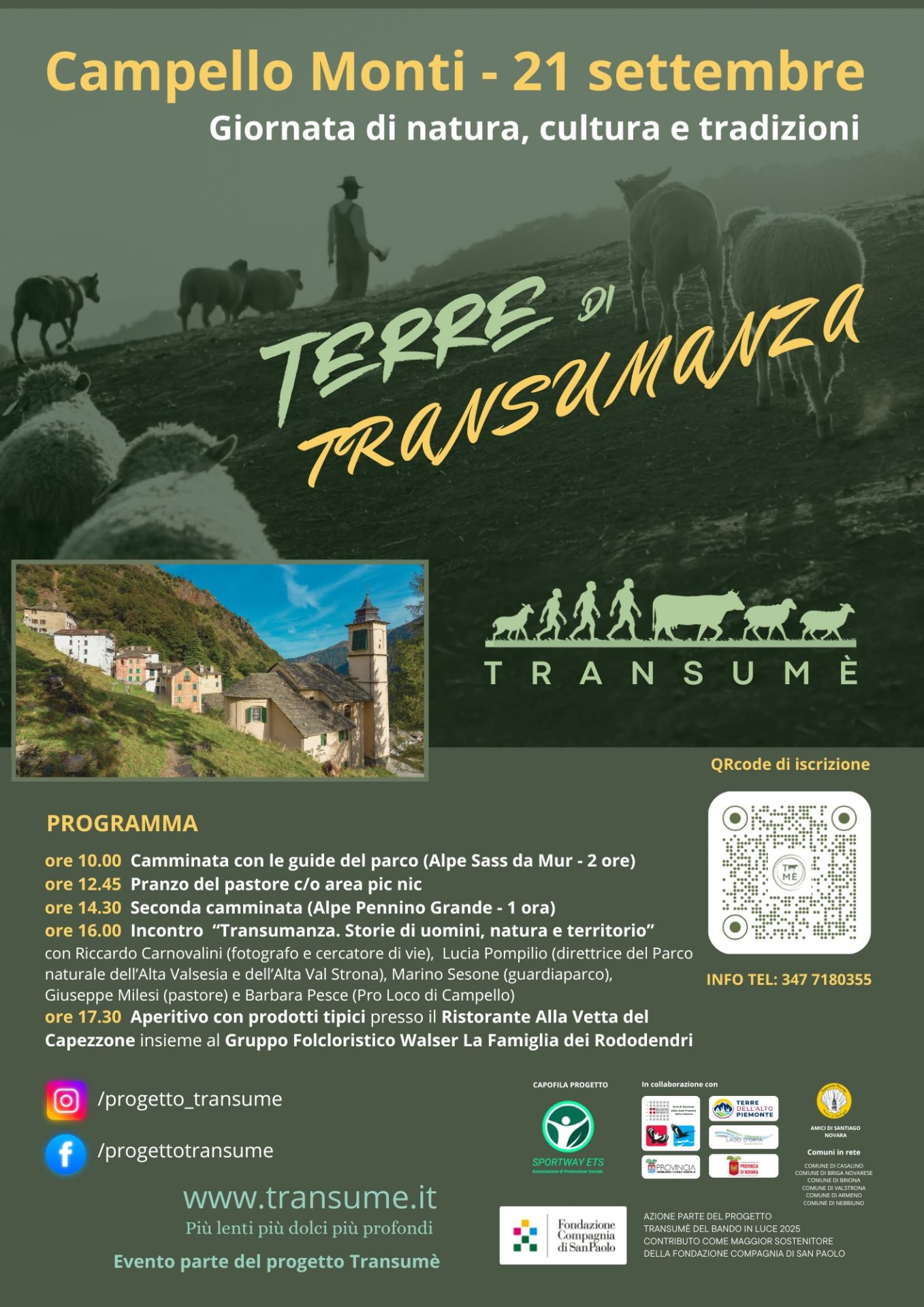 “Abbiamo aderito con entusiasmo a Transumé perché i nostri Parchi sono da sempre terre di pastori e allevatori. Campello Monti, ad esempio, deve le sue origini allo spostamento di alcuni abitanti provenienti da Rimella, fondata a metà del Duecento da coloni del vallese svizzero, che utilizzavano la conca dapprima come pascolo estivo e che nel corso del XIV secolo vi si stabilirono dando vita alla Campello che conosciamo oggi. Ne scopriremo anche le valenze naturalistiche e la biodiversità che hanno fatto sì che l’area entrasse a far parte di un Parco naturale regionale nel 2012.” Lucia Pompilio Direttrice dell'EGAP Valsesia
