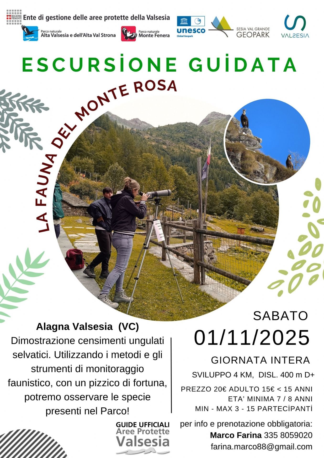 Tra i lariceti in veste autunnale e i pascoli del Comune di Alagna Valsesia, la nostra Guida Ufficiale Marco Farina accompagnerà i partecipanti in un’escursione dedicata alla scoperta della fauna del Monte Rosa.