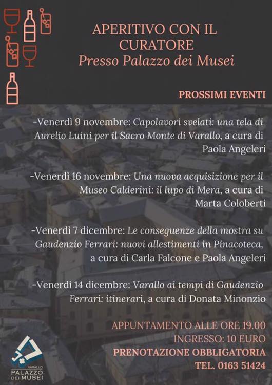 • Venerdì 16 novembre, ore 19 c/o Palazzo dei Musei - Pinacoteca di Varallo e Museo Calderini: Una nuova acquisizione per il Museo Calderini: il lupo di Mera, a cura di Marta Coloberti