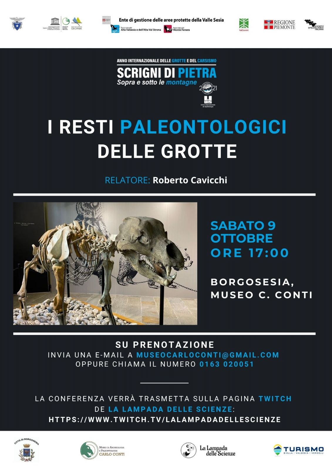 Ricordiamo che gli incontri divulgativi sono gratuiti e si tengono presso il Museo Archeologico e Paleontologico Conti di Borgosesia.